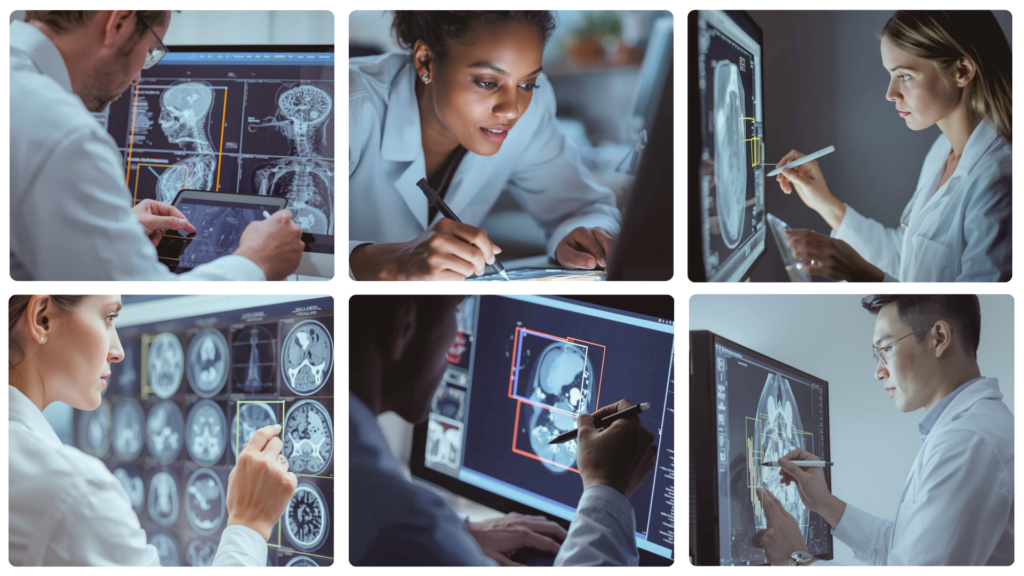 Radiology image annotation focuses specifically on CT, MRI, X‑ray, PET, and related studies. Here, radiologist‑validated labels are essential: a single missed finding or ambiguous label can erode model accuracy and clinical trust.