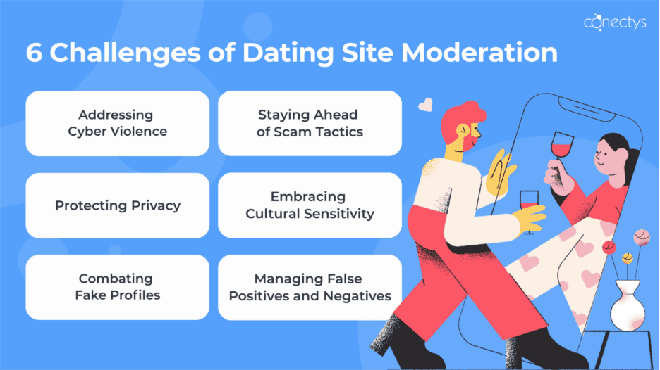 But this exciting romance landscape also has a dark side. It’s a minefield of fake profiles, scams, abusive messages, and privacy breaches, all putting daters at risk from cheaters, stalkers, fraudsters, and even more dangerous predators. Unfortunately, these threats have become an inherent part of the modern dating landscape, posing a challenge to all dating site moderation services that take their role seriously.